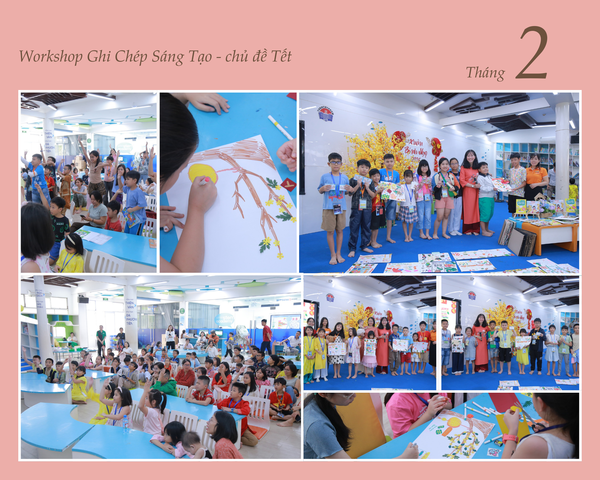 Ngay từ đầu buổi, không gian đã đầy tiếng trò chuyện, tiếng cười và sự háo hức. Các bạn nhỏ bước vào hoạt động bằng sự tò mò rất tự nhiên: quan sát - tưởng tượng - rồi ghi lại Tết theo cách riêng của mình bằng hình ảnh, màu sắc và những trang sổ sáng tạo. Có bạn vẽ lại mâm cỗ ngày xuân, có bạn ghi chép kỷ niệm đi chợ hoa, có bạn kể chuyện Tết bằng những biểu tượng rất ngộ nghĩnh.